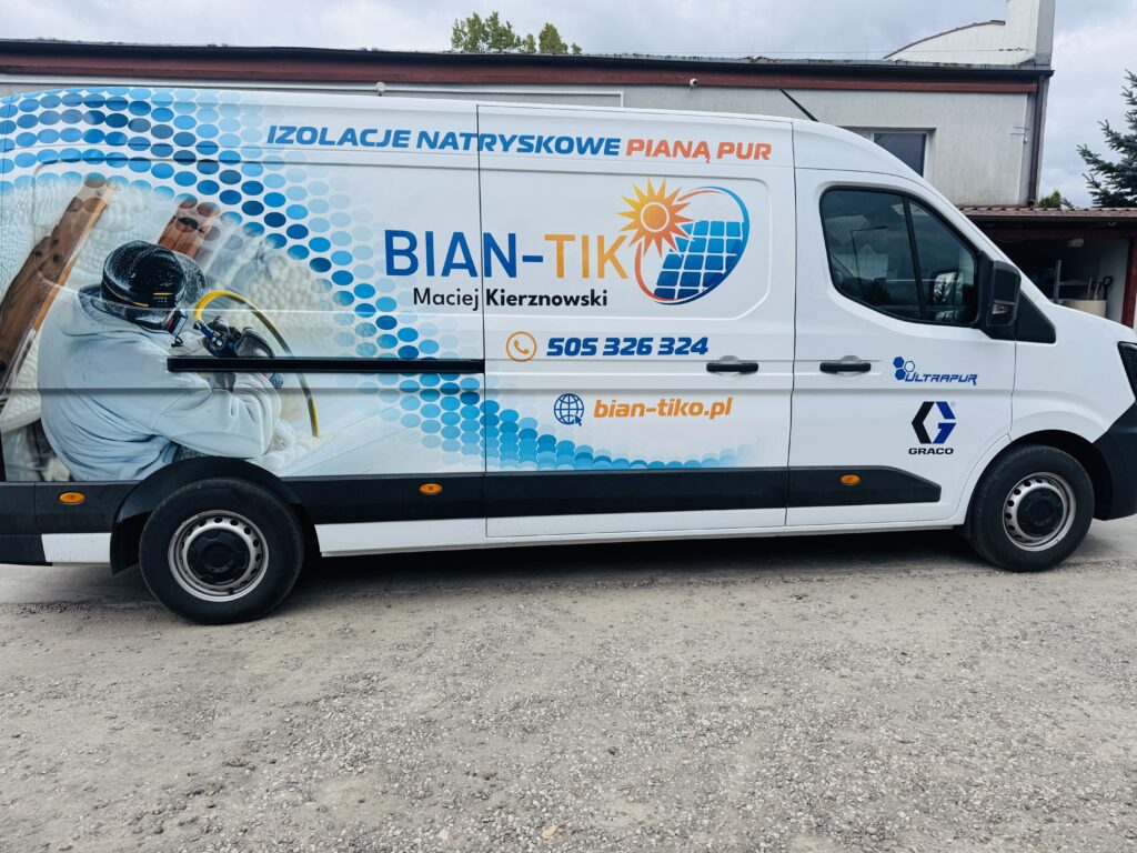 Pojazd jest przystosowany do bezpiecznego transportu agregatu natryskowego wysokociśnieniowego Graco, systemów pian PUR oraz całego niezbędnego wyposażenia. Dzięki temu mamy pełną kontrolę nad warunkami pracy, a każda realizacja przebiega sprawnie i zgodnie z ustalonym harmonogramem.